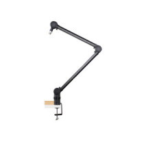 Festett, fekete asztalra szerelhető, karos mikrofonállvány. Vastag, strapabíró festésének köszönhetően ütéseknek jól ellenáll, megfelelő, száraz helyen tárolva hosszú távon sem lesznek rozsdásodási problémáink. Stabil, masszív kialakítás jellemzi. Ideális választás otthoni használatra, stúdió mikrofonokhoz.